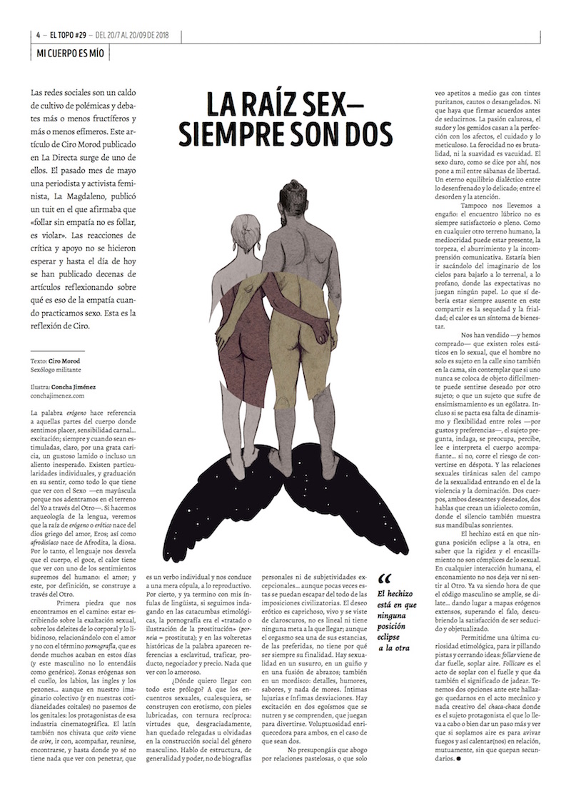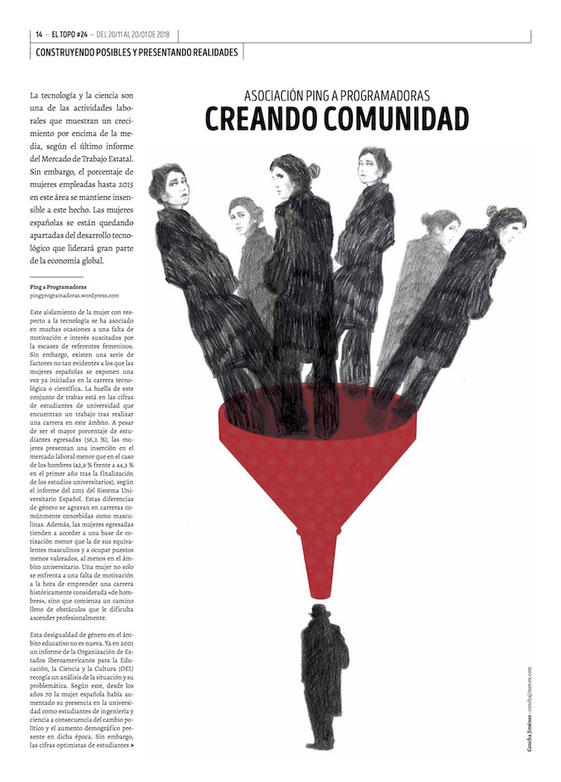 Concha Jiménez has collaborated as an illustrator with the bimonthly newspaper El Topo from 2017 to 2020.