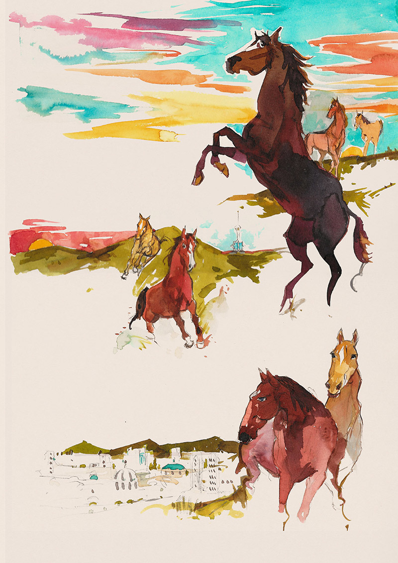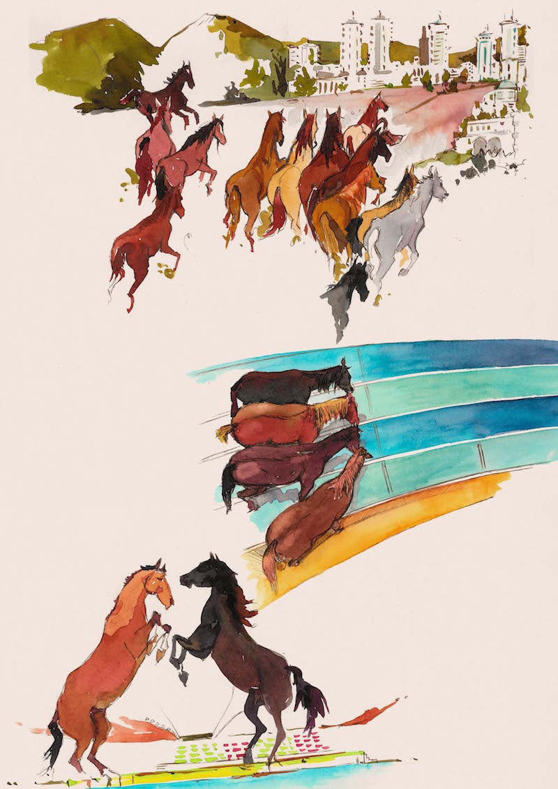Since 2009 Concha has worked as a storyboard illustrator for two communication companies. Here, some scripts made for the spot of the 2017 Asian Games in Turkmenistan and for a Volkswagen presentation event.